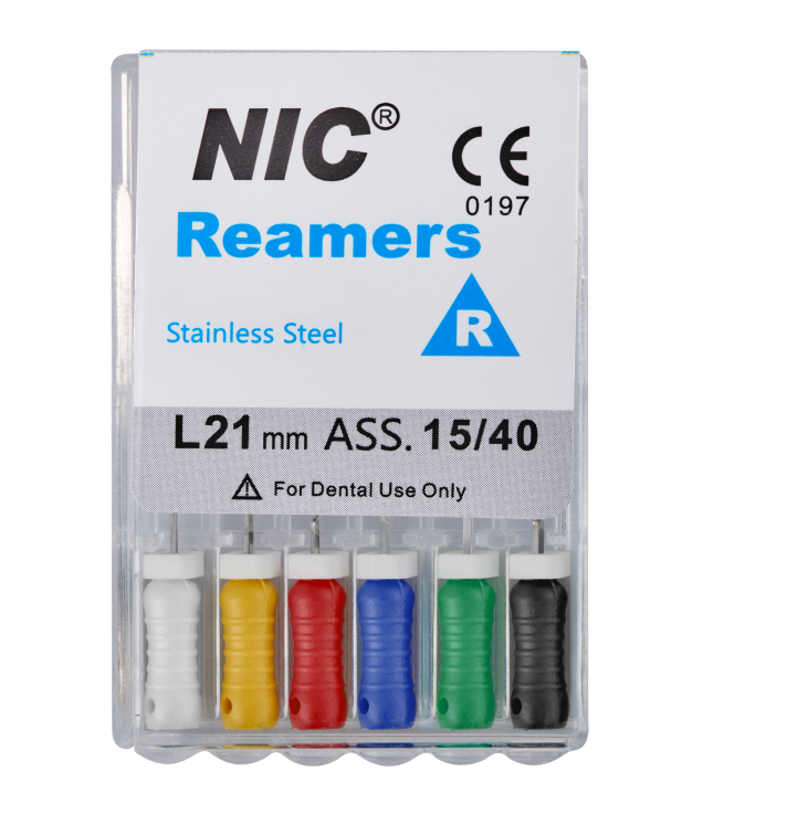 Reamers – дрильборы ручные (каналорасширители). Необыкновенно острые и заточенные до зеркального блеска режущие поверхности, обладающие при этом высокой эластичностью, гарантируют отличные рабочие характеристики инструмента. Гибкость и высокая режущая способность граней. Удлиненный шаг режущих граней. Оригинальная нержавеющая сталь из твердого волокна предотвращает коррозию после многократной очистки и стерилизации.