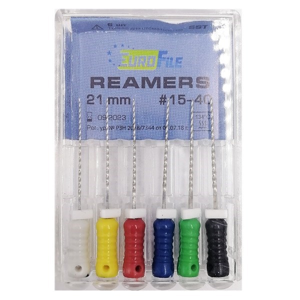 Reamers - ручные дрильборы (каналорасширители), 21 мм, №15-40, сталь, 6 шт