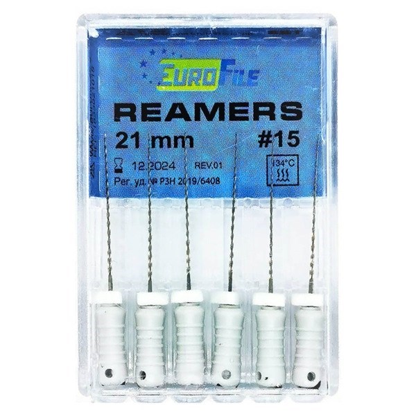 Reamers - ручные дрильборы (каналорасширители), 21 мм, №15, сталь, 6 шт