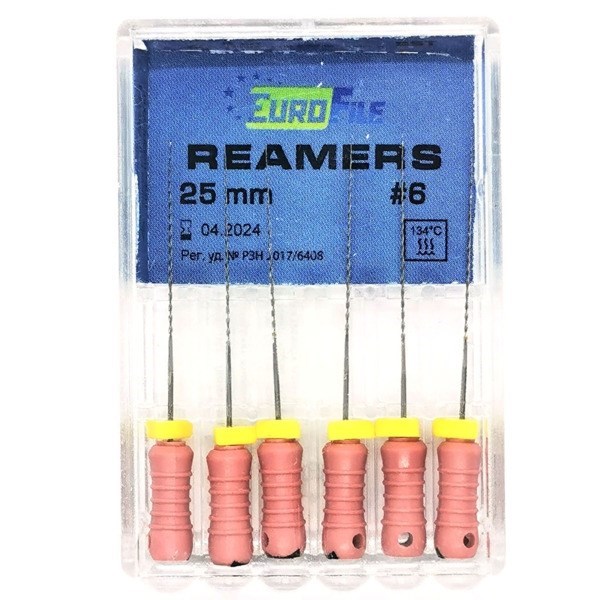 Reamers - ручные дрильборы (каналорасширители), 25 мм, №06, сталь, 6 шт