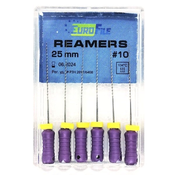 Reamers - ручные дрильборы (каналорасширители), 25 мм, №10, сталь, 6 шт