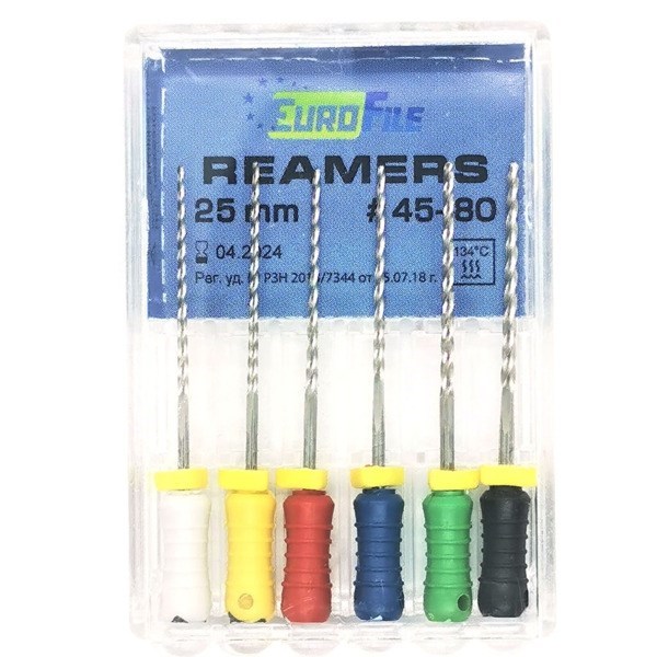 Reamers - ручные дрильборы (каналорасширители), 25 мм, №45, сталь, 6 шт
