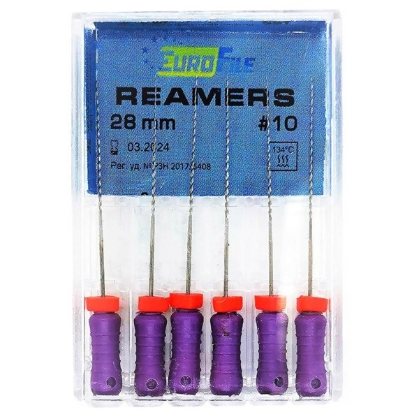 Reamers - ручные дрильборы (каналорасширители), 28 мм, №10, сталь, 6 шт