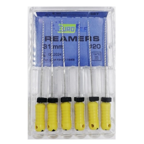 Reamers - ручные дрильборы (каналорасширители), 31 мм, №20, сталь, 6 шт