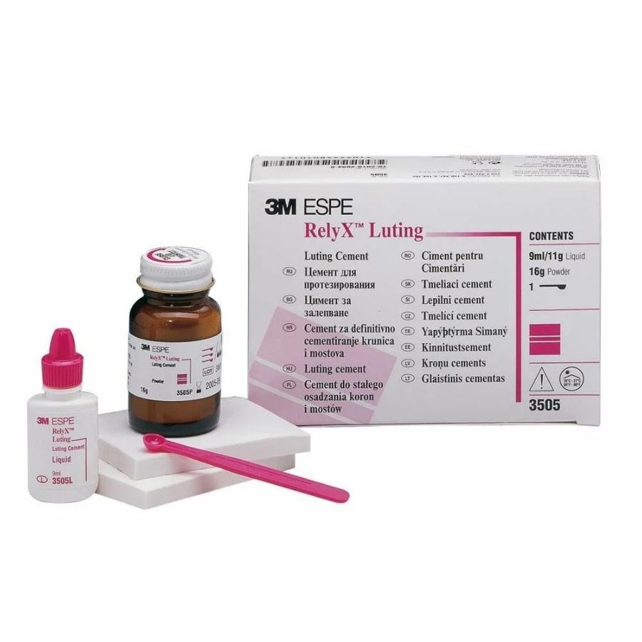 RelyX® Luting - это стеклоиономерный цемент используемый для фиксации металлокерамических и металлических коронок, мостов, вкладок и накладок, коронок из алюминия или диоксида циркония, как Lava®.
