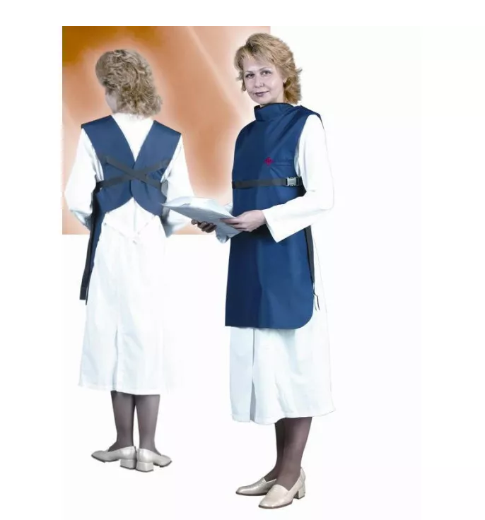 Фартук рентгенозащитный односторонний с воротником-стойкой для персонала производства Амико (Рентген-Комплект). Данная модель произведена непосредственно для стоматологических исследований, снабжена практичными застежками в виде липучек и защелкивающихся замков, что позволяет регулировать размер изделия в пределах 46-54. Фартук применяется для радиационной защиты передней части тела человека.