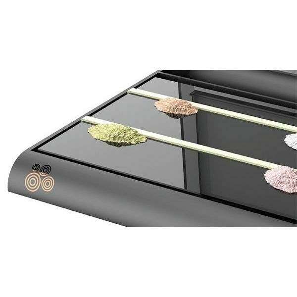 Синтетические полоски кожи расположены на стеклянной пластине в 4 мм канавках, которые надёжно фиксируют их положение. Положите керамическую массу напротив этих полос; вода из основания корпуса проникает через них в керамическую массу, создавая очень однородную консистенцию.