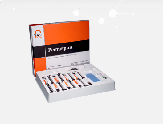 Реставрин набор ознакомительный (8 шприцев) Композитная паста: А1, А2, А3, А3.5, В2, С2, ОА2, ОА3; адгезив, гель для травления Травлин, аппликаторы.