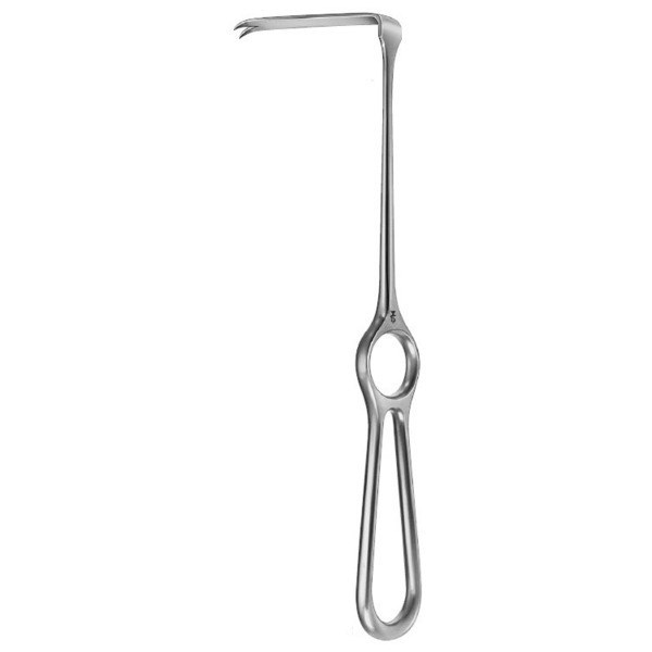 Крючок, длина 220 мм, DO408R, B.Braun (Aesculap, Германия) применяется для разведения краев кожи, мышцы или других тканей с целью обеспечения необходимого доступа к оперируемому участку. Инструмент изготовлен из высококачественной нержавеющей стали, рабочая часть изогнута под углом 90 градусов с разветвленным острым окончанием.