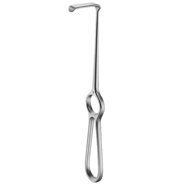 Крючок по KOCHER-LANGENBECK, 25х6 мм, длина 215 мм, BT354R, B.Braun (Aesculap, Германия) выполнен из нержавеющей стали, имеет Г-образную изогнутую под углом рабочую часть, кончик которой направлен вниз. Предназначен для ретракции мягких тканей в процессе выполнения различных терапевтических и хирургических манипуляций. За счет особой формы рабочей части инструмент позволяет обеспечить специалисту свободный доступ и хороший обзор зоны вмешательства.