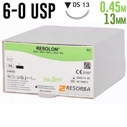 Резолон 6-0 USP, 0.45 м, 3 Синий, упаковка 1 шт, RESORBA