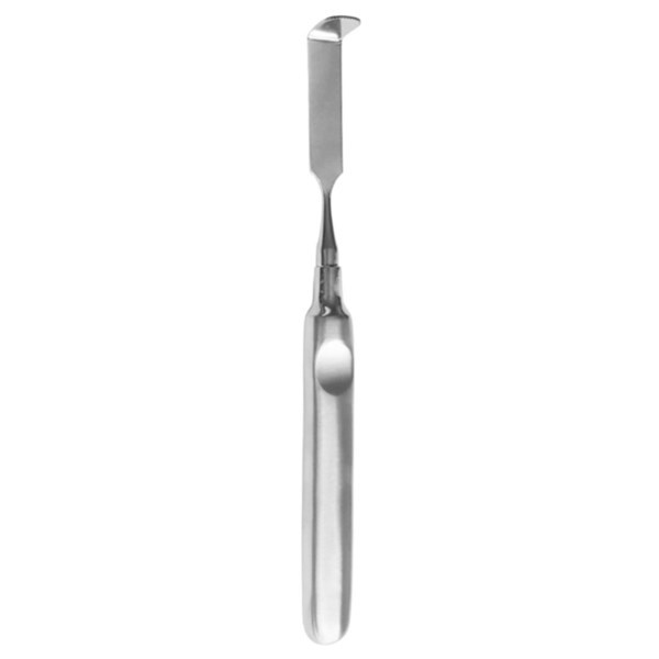 Кончик рабочей части закруглен. Такая конструкция рабочей части ретрактора обеспечивает хорошую поддержку мягких тканей. Специальная форма рукоятки инструмента имеет два отверстия под пальцы руки, благодаря которым роторасширитель надежно фиксируется и позволяет снизить нагрузку на руку. Мартенситная сталь DIN 1.4006, X10Cr13 (ГОСТ 12X13).