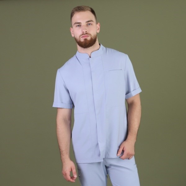 Медицинская мужская рубашка TZ700 выполнена в современном крое с воротником-стойкой и короткими рукавами. Модель с супатной застежкой на молнии и имеет два нагрудных кармана и два боковых.