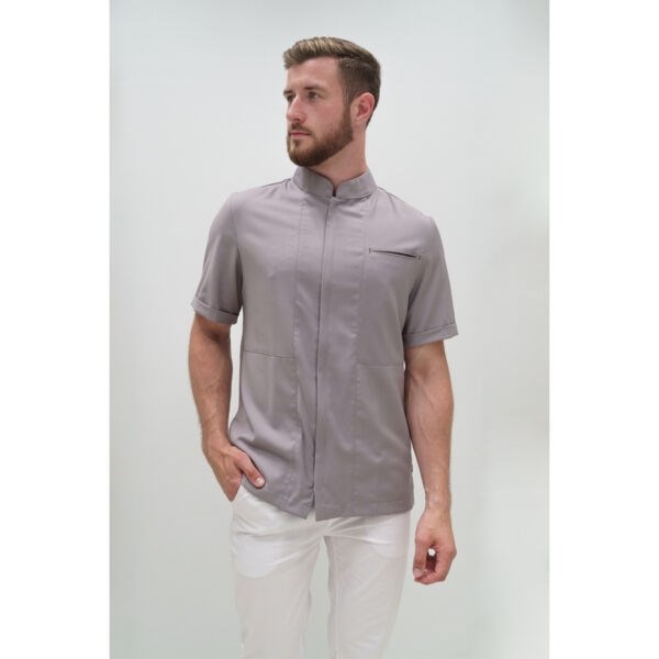 Медицинская мужская рубашка TZ700 выполнена в современном крое с воротником-стойкой и короткими рукавами. Модель с супатной застежкой на молнии и имеет два нагрудных кармана и два боковых.