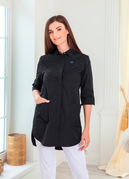 Изящный блузон "Берта" от White Wears с удлиненной задней полочкой и рукавами ¾ позволит выглядеть гармонично и произвести положительное впечатление на нового пациента. Модель свободного кроя, застегивается спереди на металлические кнопки. Для нужных мелочей предусмотрены два накладных вместительных кармана. Этот блузон станет вашей любимой вещью! Сочетайте его с брюками или юбкой, меняя образы. Помимо дизайна, преимуществом нашей модели является материал, из которого она выполнена - основная ткань: сатори (50% хлопок, 50% полиэфир). Это обеспечивает ее износоустойчивость при стирке и дезинфекции.