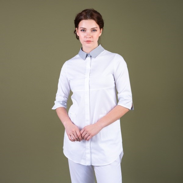 Женская рубашка на кнопках TZ450 имеет отложной воротник и рукава длины ¾. Модель удлиненного кроя, что создает дополнительный комфорт при движении. Рубашка застегивается спереди на металлические кнопки. Дополняют изделие практичные и функциональные накладные карманы. Универсальный дизайн модели обеспечивает посадку рубашки на разный тип фигуры.