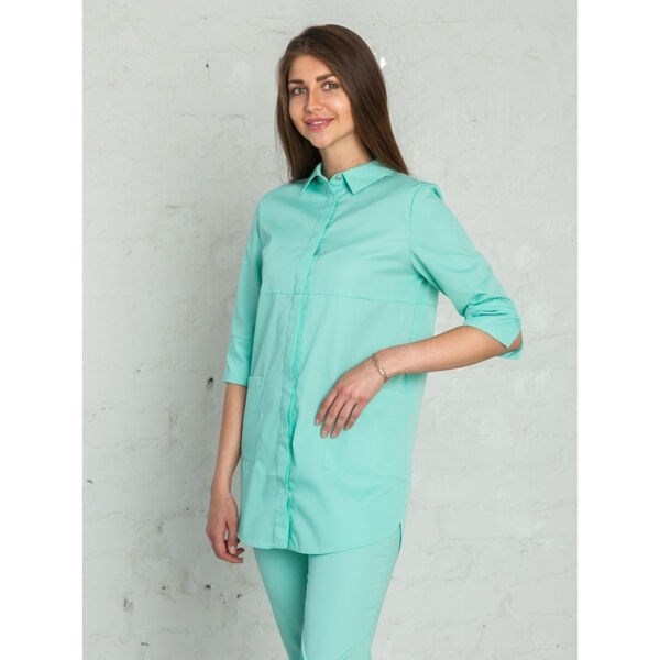 Изящный блузон "Берта" от White Wears с удлиненной задней полочкой и рукавами ¾ позволит выглядеть гармонично и произвести положительное впечатление на нового пациента. Модель свободного кроя, застегивается спереди на металлические кнопки. Для нужных мелочей предусмотрены два накладных вместительных кармана. Этот блузон станет вашей любимой вещью! Сочетайте его с брюками или юбкой, меняя образы. Помимо дизайна, преимуществом нашей модели является материал, из которого она выполнена - основная ткань: сатори (50% хлопок, 50% полиэфир). Это обеспечивает ее износоустойчивость при стирке и дезинфекции.