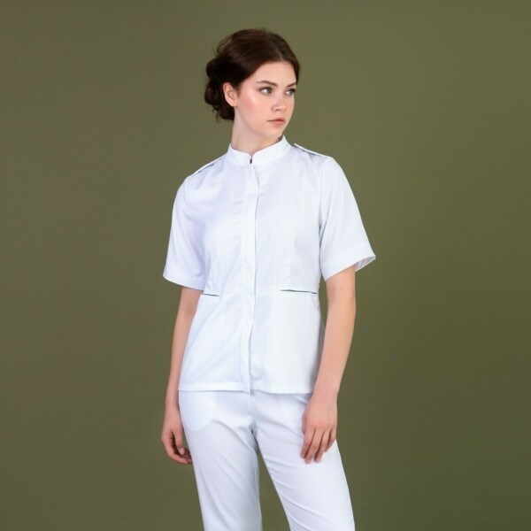 Женская рубашка на молнии модель TZ400 имеет приталенный крой, который подойдет для всех типов фигур. Воротник-стойка, рукав средней длины, два боковых кармана и вытачки на груди обеспечивают комфортную носку, придают стиля образу. Рубашка застегивается на молнию.