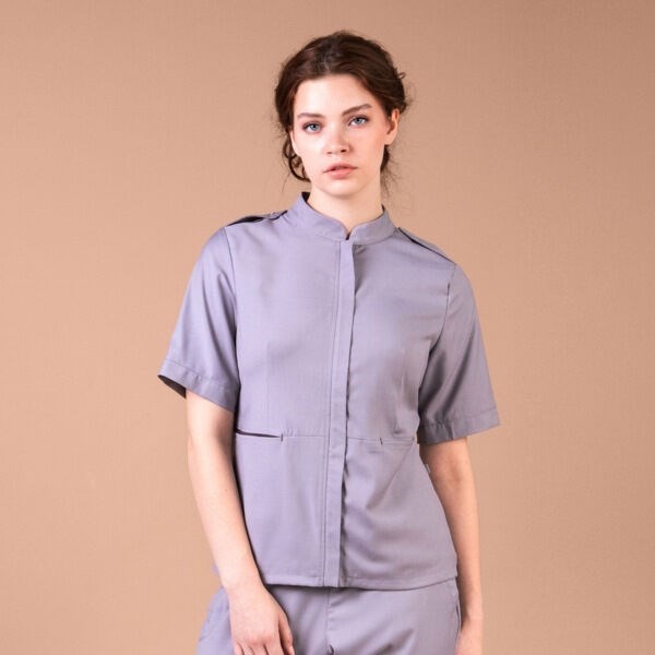 Женская рубашка на молнии модель TZ400 имеет приталенный крой, который подойдет для всех типов фигур. Воротник-стойка, рукав средней длины, два боковых кармана и вытачки на груди обеспечивают комфортную носку, придают стиля образу. Рубашка застегивается на молнию.