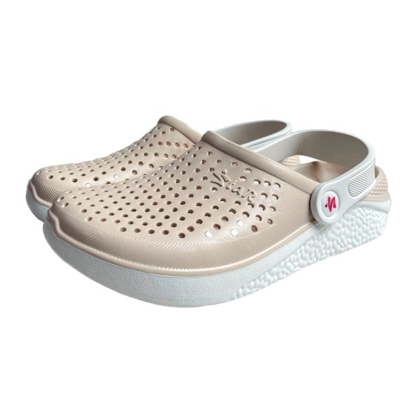 Сабо выполнены из легкого материала эва и практически не ощущаются при носке. Благодаря перфорации на носке, нога в обуви дышит. Пяточный ремешок фиксирует ногу. Если Вы предпочитаете более открытую обувь, то можете отвернуть ремешок и носить шлепки без него.