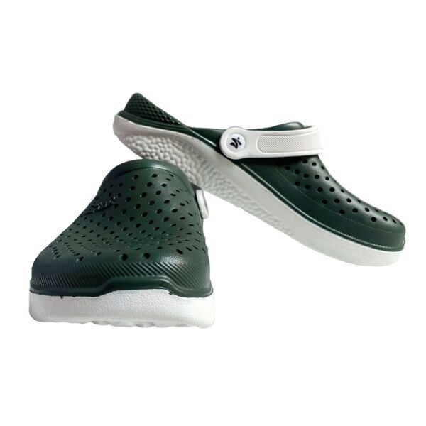 Сабо выполнены из легкого материала эва и практически не ощущаются при носке. Благодаря перфорации на носке, нога в обуви дышит. Пяточный ремешок фиксирует ногу. При желании его можно отвернуть и носить пару как шлепки.