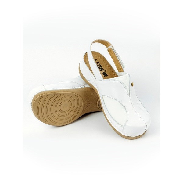Белые женские сабо Leon 913 с ремешком на пятке превосходно дополнят повседневный гардероб. Ортопедическая обувь помогает правильно распределить нагрузку на стопу, поэтому, если ваша работа связана с длительным пребыванием на ногах, рекомендуется использовать именно её.