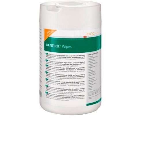 Описание: Салфетки Dentiro Wipes банка 120шт.DENTIRO Wipes – это готовые к применению влажные салфетки для тщательной быстрой дезинфекции и чистки небольших поверхностей изделий медицинского назначения (напр.: инструментов, операционных столов, отсасывающих шлангов, прямых и угловых наконечников бормашины, ручек светильников, а также медицинского инвентаря из таких материалов как ПВХ, силикон, пластик, акриловое стекло, алюминий либо медь). Большое влагосодержание салфеток позволяет очень просто обрабатывать значительные поверхности каждой салфеткой. Содержание спирта менее 50% снижает вероятность возникновения аллергических реакций, а также обеспечивает хорошую переносимость материалами и кожей. DENTIRO Wipes не содержат альдегидов и биологически легко расщепляемы. Размер салфеток: 14,5 х 20 см, плотность флиса – 28 г/м(2) Салфетки можно повторно увлажнять всеми продуктами серии DENTIRO (DENTIRO Light, DENTIRO Mikro и DENTIRO Sensitive), а также аэрозолем ISORAPID Spray.