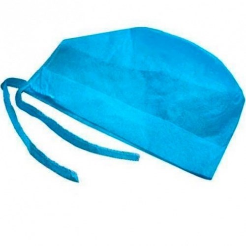 Специально разработанная модель высокой шапочки из воздухопроницаемого материала Спанбонд, с завязками для соединения на затылке.