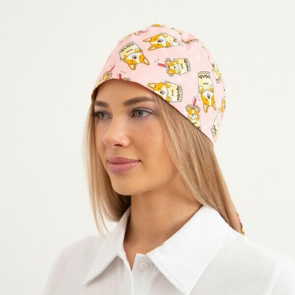 Медицинская шапочка облегающей формы имеет анатомическую посадку, которая обеспечивает полное покрытие головы и надежно удерживает волосы. Эластичная резинка сзади и завязки, позволяют индивидуально регулировать размер головного убора, а пуговицы по бокам удерживают маску, избавляя уши от давления. На внутренней стороне лобной части есть махровая вставка.