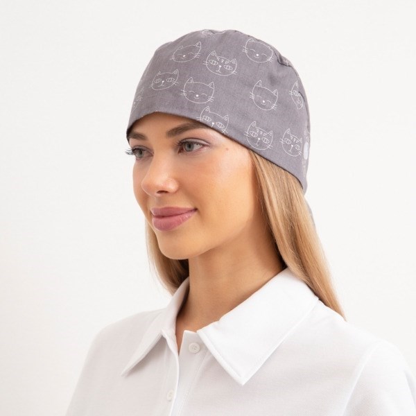 Медицинская шапочка облегающей формы имеет анатомическую посадку, которая обеспечивает полное покрытие головы и надежно удерживает волосы. Эластичная резинка сзади и завязки, позволяют индивидуально регулировать размер головного убора. На внутренней стороне лобной части есть махровая вставка.