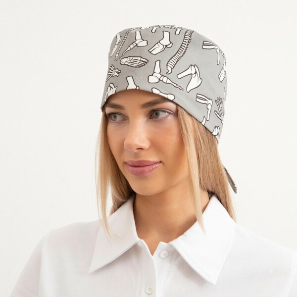Шапочка медицинская, принт "Кости", серый