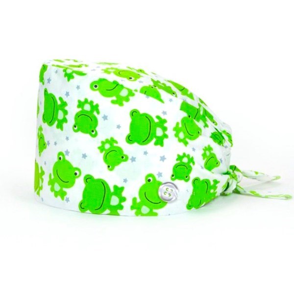 Медицинская шапочка с принтом облегающей формы имеет анатомическую посадку, которая обеспечивает полное покрытие головы и надежно удерживает волосы. Эластичная резинка сзади и завязки, позволяют индивидуально регулировать размер головного убора, а пуговицы по бокам удерживают маску, избавляя уши от давления. На внутренней стороне лобной части есть махровая вставка.
