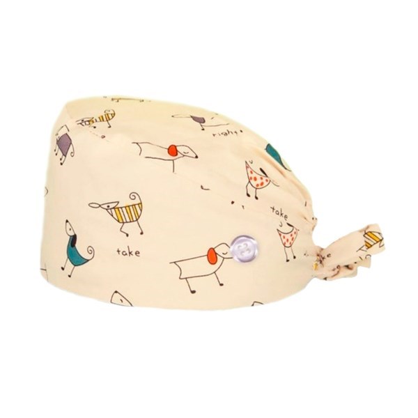 Шапочка медицинская, принт "Нарисованные собачки", бежевый
