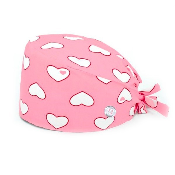 Медицинская шапочка с принтом облегающей формы имеет анатомическую посадку, которая обеспечивает полное покрытие головы и надежно удерживает волосы. Эластичная резинка сзади и завязки, позволяют индивидуально регулировать размер головного убора, а пуговицы по бокам удерживают маску, избавляя уши от давления. На внутренней стороне лобной части есть махровая вставка.