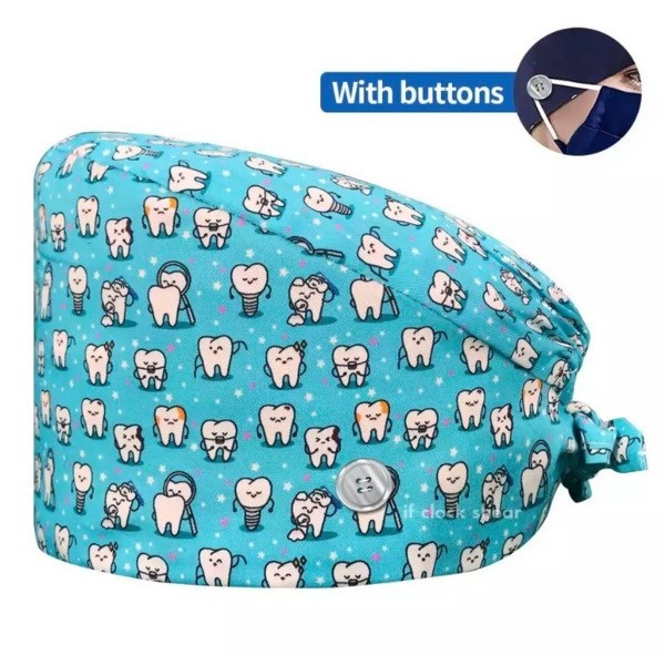 Шапочка медицинская, принт "Зубы", бирюзовая