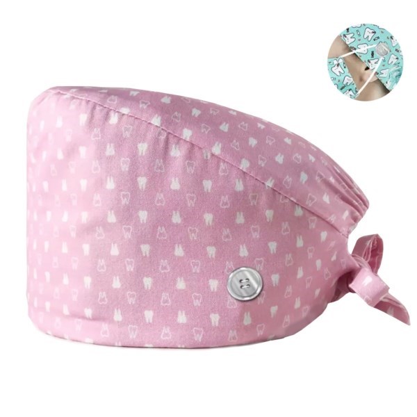 Шапочка медицинская, принт "Зубы", розовая