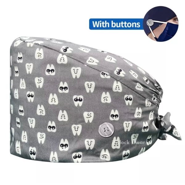 Шапочка медицинская, принт "Зубы", серый