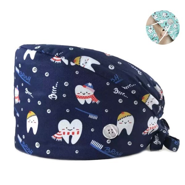 Шапочка медицинская, принт "Зубы", синяя