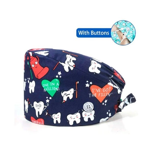 Шапочка медицинская, принт "зубная паста и зубы", синий