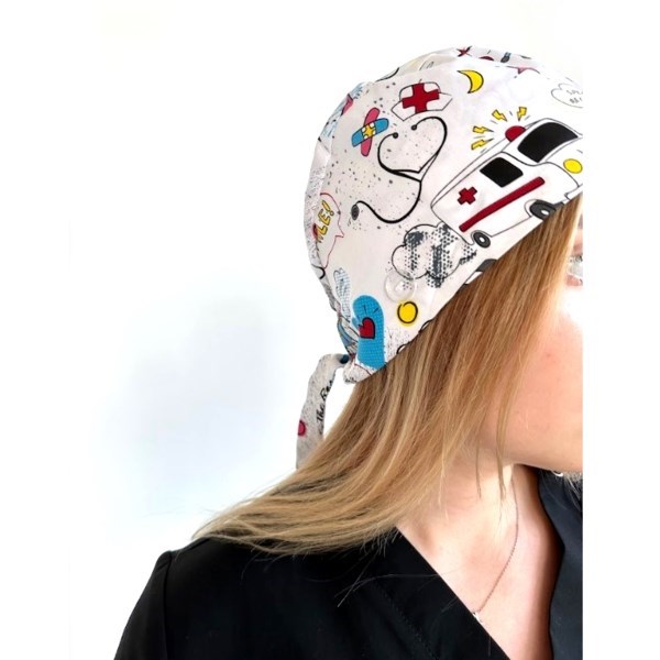 Шапочка медицинская TZ002, принт "Скорая помощь"