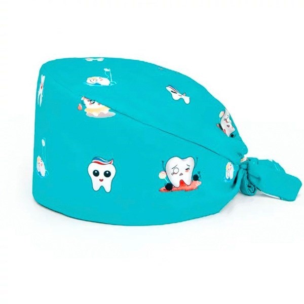 Медицинская шапочка облегающей формы с анатомической посадкой, полностью покрывает голову и надежно удерживает волосы. Эластичная резинка сзади и завязки позволяют регулировать размер шапочки, а пуговицы по бокам предназначены для фиксации маски, избавляя уши от давления. Изнутри шапочки в лобной части есть махровая вставка.