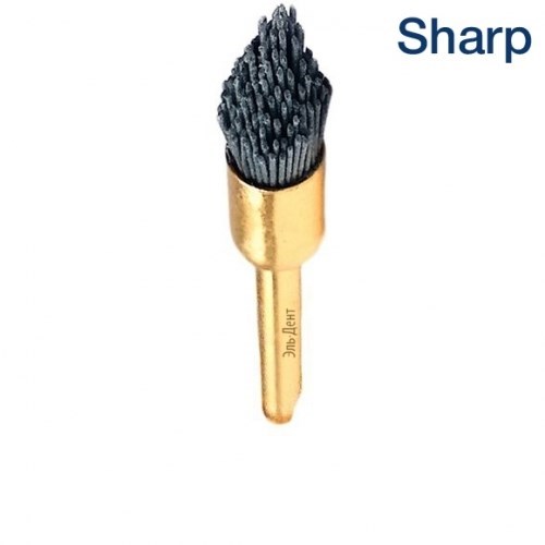 Щётка "Kagayaki Sharp" наполненная абразивными частицами карбида кремния, создана для ультра полировки акклюзионных и вогнутых поверхностей реставраций из композитов, стеклоиономеров и керамики без применения паст.