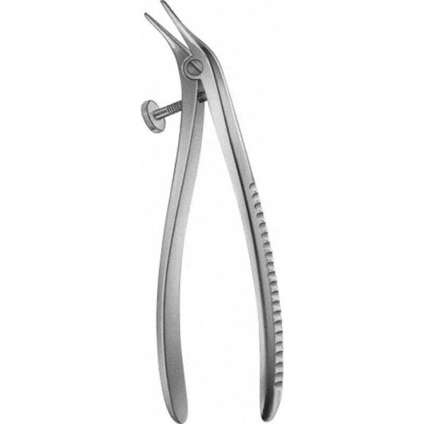 Щипцы для снятия коронок по Boehm, длина 140 мм, DP739R, B.Braun (Aesculap, Германия) изготовлены из высококачественной нержавеющей стали, на внешней стороне браншей нанесены поперечными насечки, предотвращающие скольжение и обеспечивающие прочную фиксацию инструмента в руке. Инструмент имеет установочный винт, с помощью которого можно отрегулировать давление на коронку и избежать её повреждения.