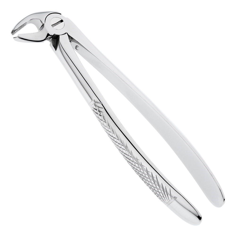 Клювовидные щипцы изогнуты по ребру и на внутренней поверхности рабочей части выполнены с продольно-поперечными насечками. Конструкция инструмента обеспечивает плотный захват зуба и дает возможность ввести щипцы глубоко в полость рта.