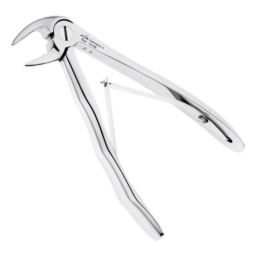 Для удаления молочных резцов на нижней челюсти у детей используются щипцы формы №5В известного производителя HLW Dental Instruments.