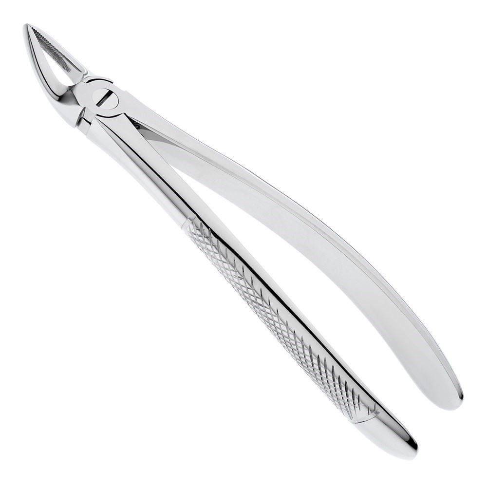 Рабочие части инструмента сходящиеся. Внутренние поверхности щечек щипцов покрыты продольно-поперечными насечками, за счет которых инструмент надежно захватывает корень зуба, не давая ему выскользнуть. Байонетный изгиб рабочей части щипцов позволяет добраться до труднодоступных участков в полости рта.