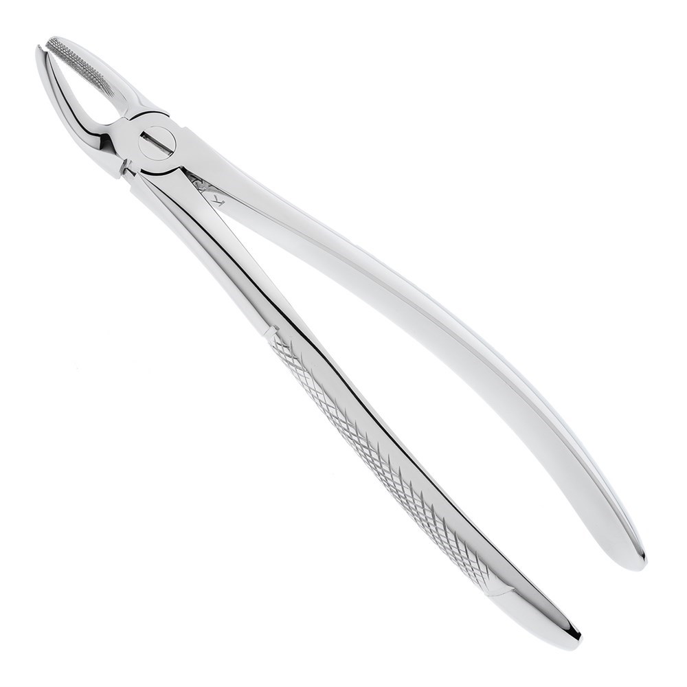 Щипцы предназначены для удаления моляров с правой стороны и имеют двойной изгиб по плоскости. Такая конструкция инструмента дает возможность ввести его глубоко в ротовую полость маленького пациента.