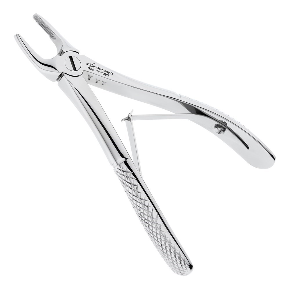 Детские щипцы формы №139В изготовлены для удаления молочных премоляров верхней челюсти.