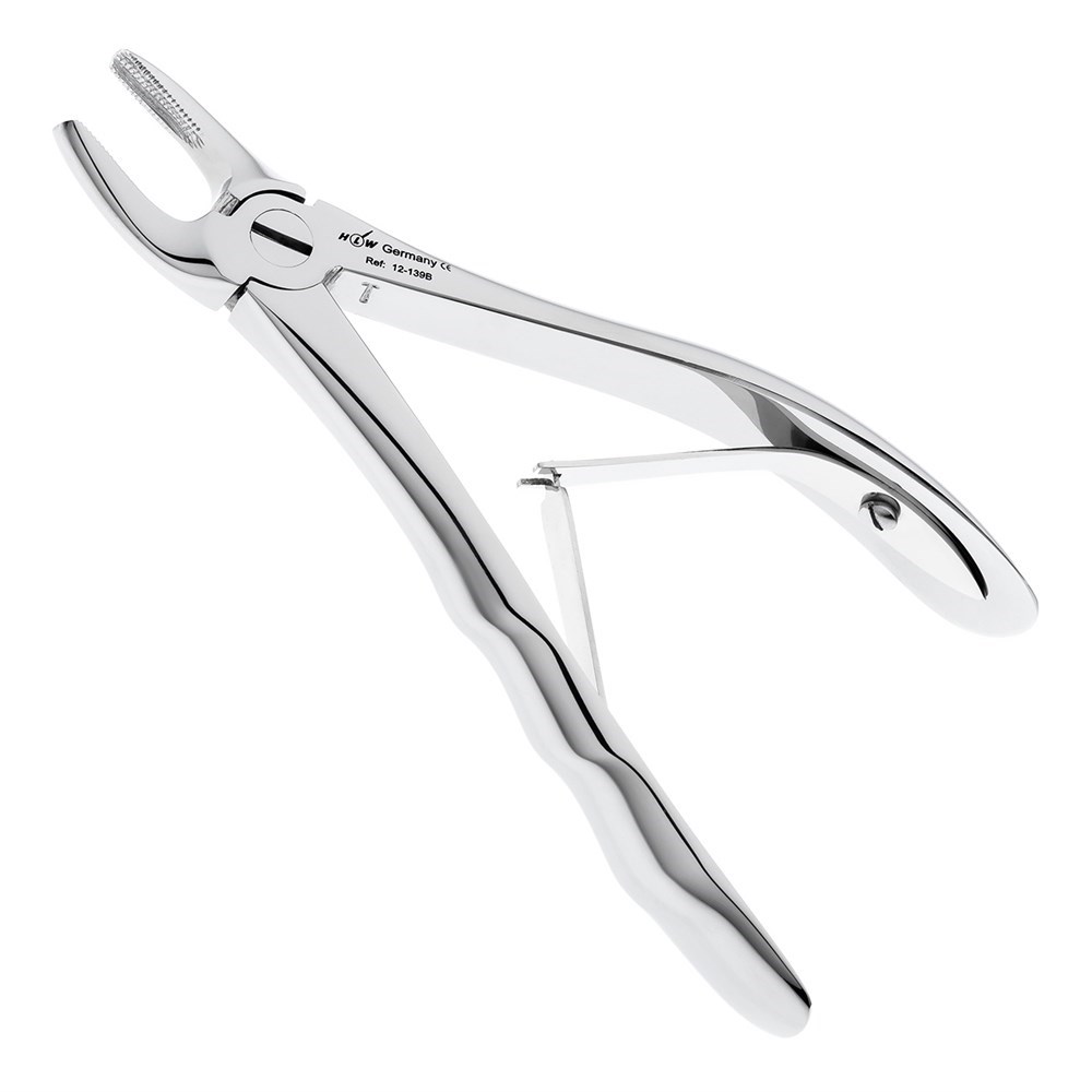 Для удаления молочных премоляров верхней челюсти у детей применяются щипцы формы №139В производства HLW Dental Instruments.