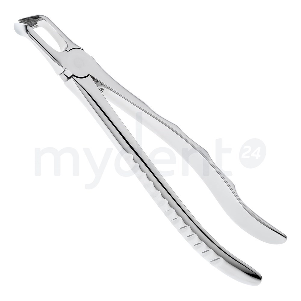 Щипцы имеют изгиб по плоскости под тупым углом к продольной оси инструмента, благодаря чему есть возможность ввести щипцы глубоко в полость рта.